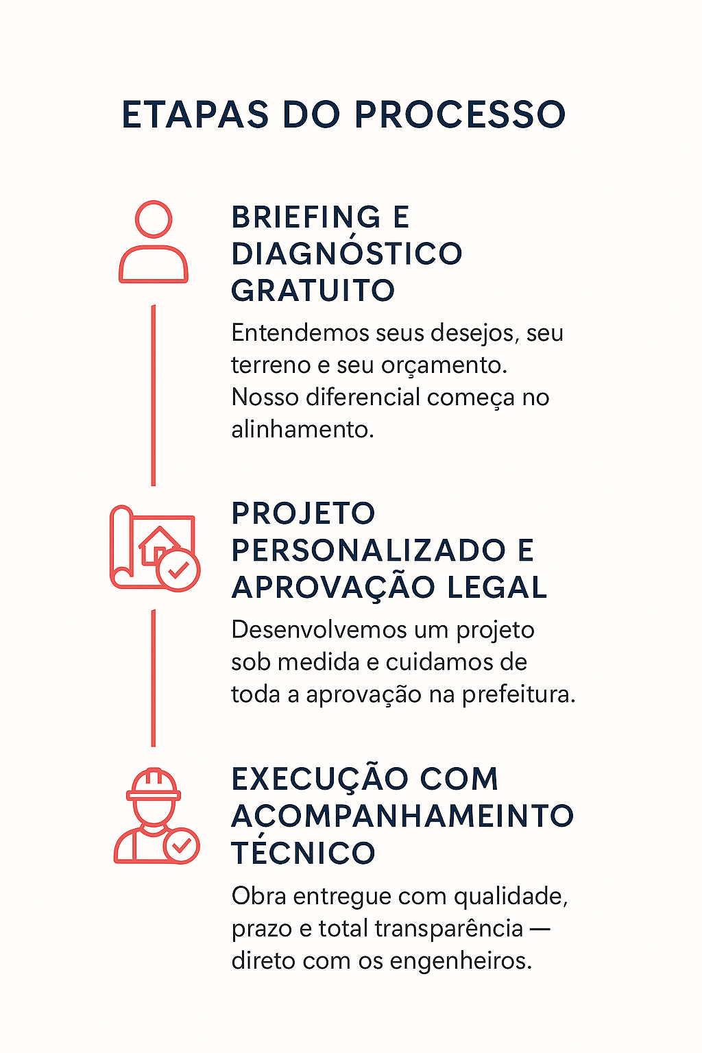 Oferecemos uma jornada completa, do sonho ao acabamento, com transparência, segurança e atenção total aos detalhes.
